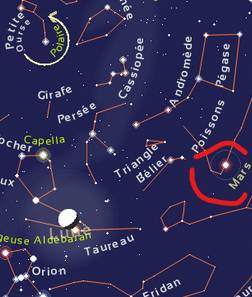 Carte du ciel en temps réel Le rapprochement entre Mars et la Terre a lieu