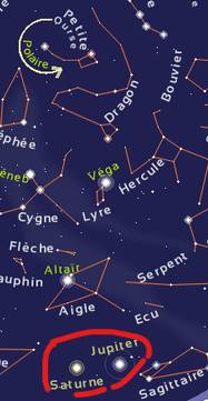 (sud-ouest); plus que Jupiter le soir (plein sud). Notez que Saturne est