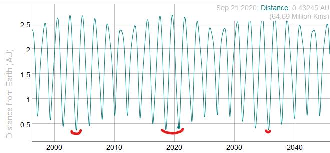 août 2003, le plus proche depuis 60 000 ans. Le 25 septembre 2020