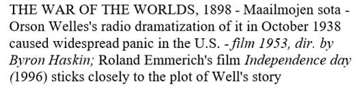 complète de Wells Traduction: Maailmojen sota = Guerre des mondes en finnois. En Octobre 1938 à la