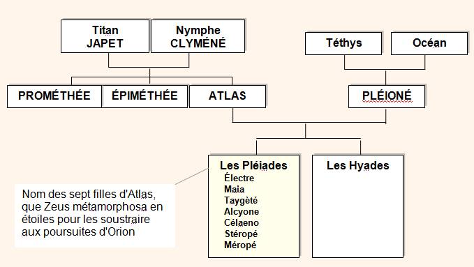 les sept filles d'Atlas et de Pléioné que Zeus changea en étoiles pour les