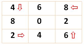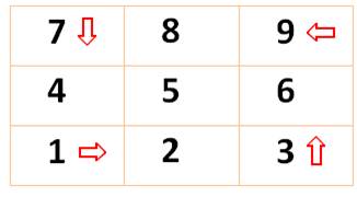 progression de B cases selon la direction indiquée. |