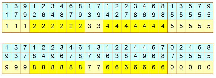 le multiplicande est impair l'unité est 5; s'il est pair, l'unité est 0. |