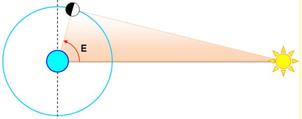 l'élongation de la Lune. Lorsque la Lune est à son premier quartier,