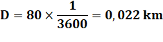 Soit 10 km => 5 x 10 = 50 s 80 km => 5 x 80 = 400 s = 6, 66 min |
