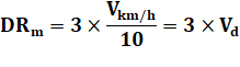 km/h => DF = 0,4 x 13 x 13 = 67,6 m |