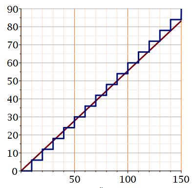 alors la courbe en escalier du graphe. Calcul exact pour 2 secondes:
