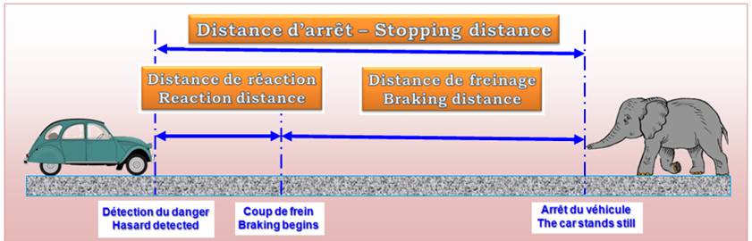Notion de distance d'arrêt = distance de réaction + distance de freinage
