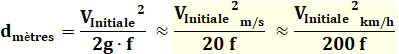 parcourue (valeur absolue, f est le facteur d'adhérence au sol):