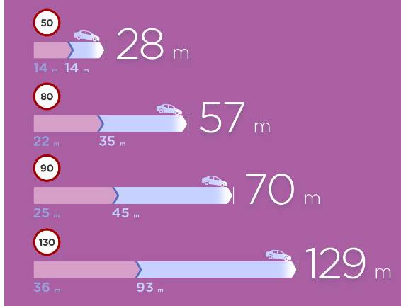 Exemple: à 80 km/h, la distance d'arrêt est environ