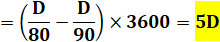 en secondes sur une distance D en km, selon les deux vitesses. |