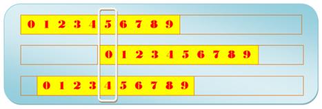 Notez qu'en enroulant les réglettes sur elle-même, nous réalisons un compteur classique. Avec trois chiffres décimaux,