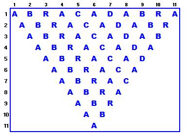 "abrakadabra" est inscrit sur chaque ligne Il est tronqué pour