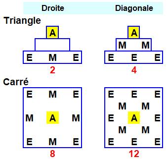 rouge. On a deux fois le triangle précédent: 2 x 4 mots, Total : 2 x 2² – 1 = 7 mots Avec le troisième quadrant, on ajouté à nouveau