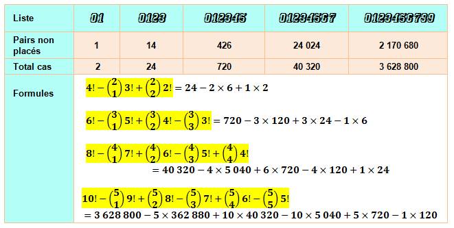 d'abord les cas où les nombres pairs sont bien placés: