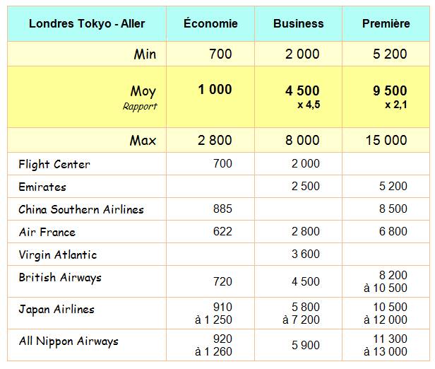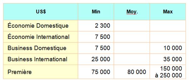 prix d'un billet en business compte pour 5 à 10 fois celui d'un trajet en