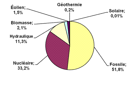 l’énergie en Europe 2002 est d’origine fossile, nucléaire et hydraulique.