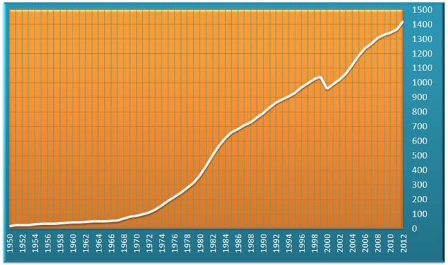 Évolution du Smic mensuel de 1950 à 2012