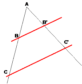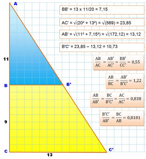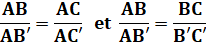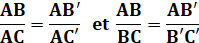 et on vérifie le théorème de Thales sous tous ces rapports. Note: le calcul de la longueur de BB'