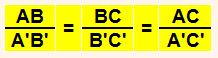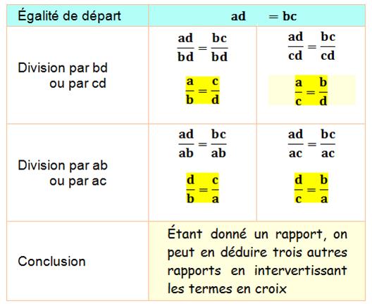 deux droites parallèles, formant des triangles rectangles. On calcule les rapports indiqués ci-dessus