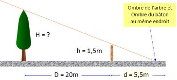 le tronc) et le bâton sont les côté parallèles de deux triangles rectangles. -