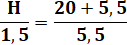 H = 25,5 x 1,5 / 5, 5 = 6,95 m |