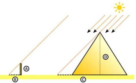 D = A · C / B (C = ombre + ½ base de la pyramide) |