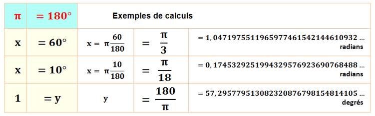 Égalités (toutes ces valeurs sont à 2k Pi près) |