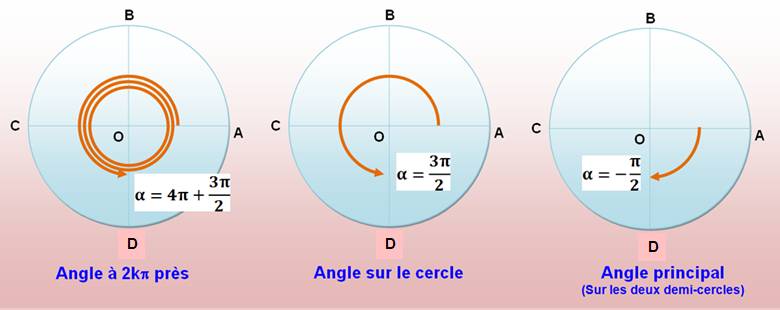 de parcours de l'angle importe. Cette notion va trouver son plein emploi en trigonométrie. |