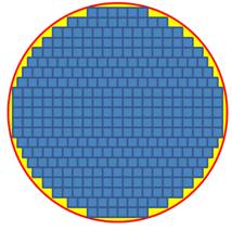 Cas des carrés chevauchant la circonférence R