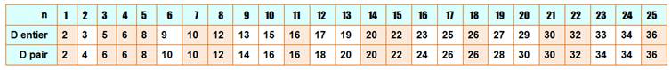 diamètre sera un nombre pair et deviendra: |
