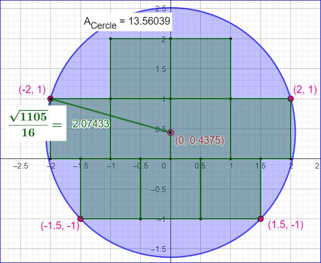 cherchons à inclure une quantité maximale (Q) de carrés unités dans un cercle