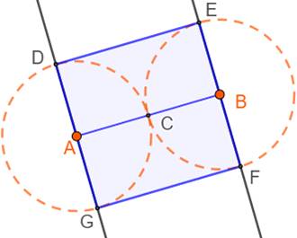 Cercles (A, AC) et (B, BC). Intersections D, E, F et G, sommet du
