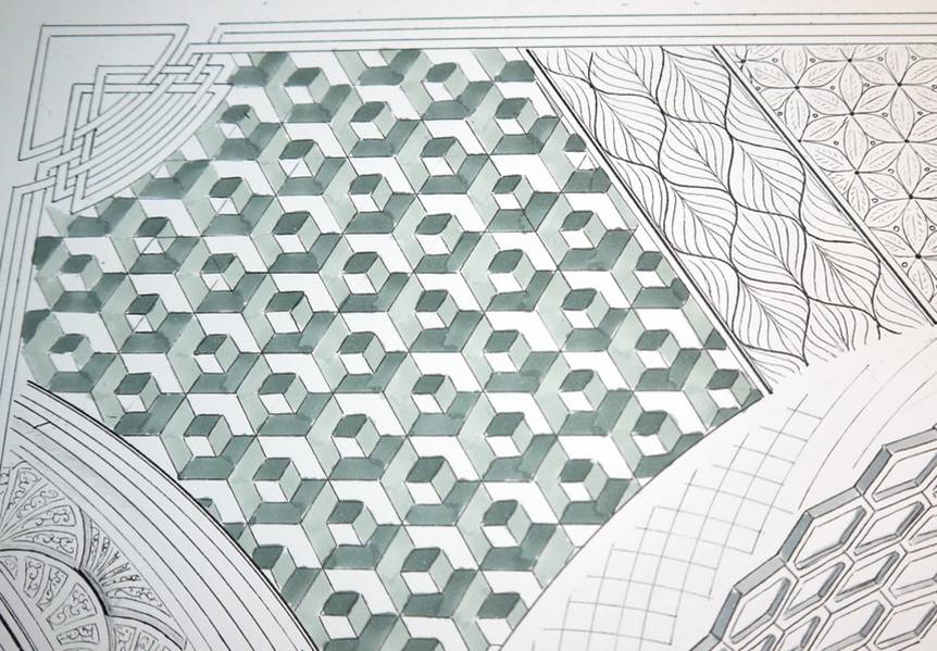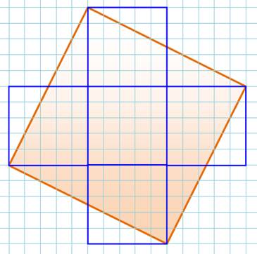 quatre lignes (ici en bleu) dessiner cinq petits carrés dont l'aire totale