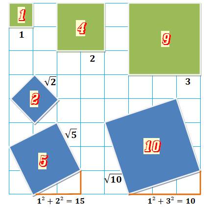 nombres sommes de deux carrés 0, 1, 2, 4, 5, 8, 9, 10, 13, 16, 17, 18, 20, 25,