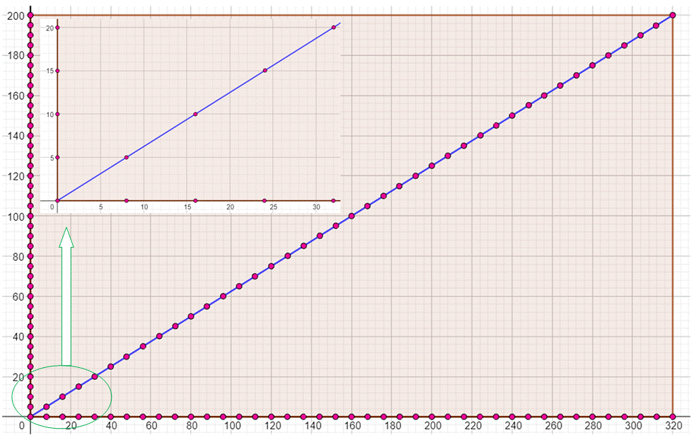 point du quadrillage chaque fois que x progresse de 4. La quantité de points rencontrés sur la