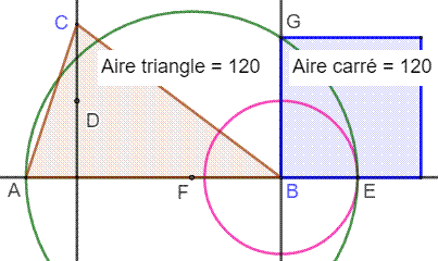 pour tracer le cercle vert. Intersection G. BG est le côté