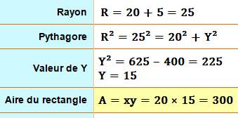 dans un quart de cercle (1/2) >>> Aire du rectangle