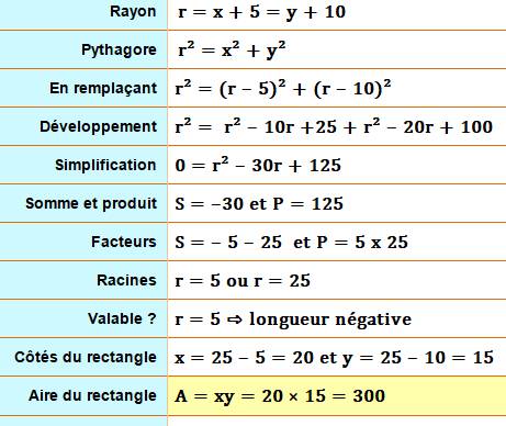 dans le triangle rectangle >>> Aire du rectangle