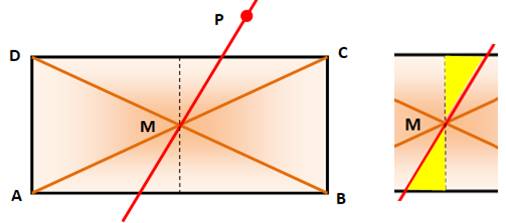 milieu M. Tracer la droite PM qui partage le rectangle en deux parties
