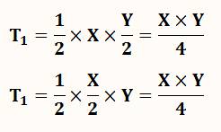 Les aires des triangles T1 et T2 sont égales. Théorème Les quatre triangles découpés par les