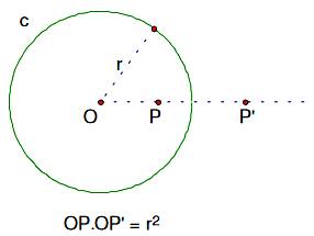 Un cercle de centre O et de rayon r. Deux point sur une demi-droite issue de O sont des inverses si OP.OP'
