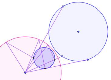 aux deux cercles bleus et passant par le point A Principe La droite D est tangente aux deux cercles images