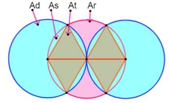 troisième cercle de rayon plus petit et centré une des intersections des deux