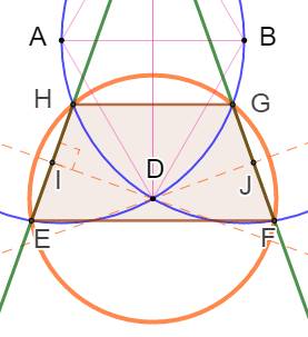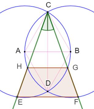 trapèze isocèle EFGH sur les deux cercles. La symétrie induit: CH = CG, CE = CF ou encore HE