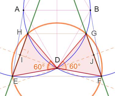 quadrilatère EFGH de centre D, les triangles DEH et DFG sont équilatéraux. Ils sont isocèles par construction (rayons du