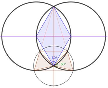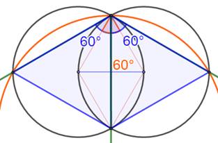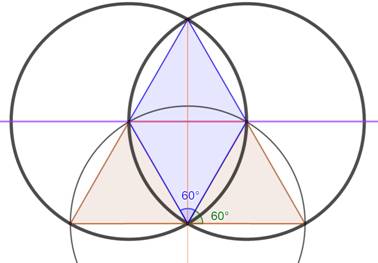 cercles de même rayon dont l'un passe par le centre de l'autre. Un