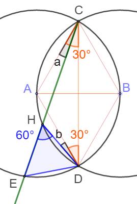 que l'angle en E vaut aussi 60° et que, par conséquent, le triangle DEH est