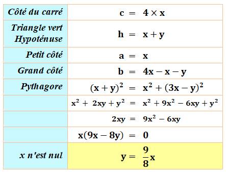 triangle rectangle vert dont on connait les trois côtés et appliquer le théorème