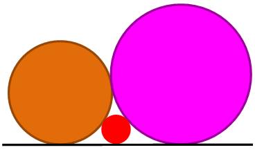 Trois cercles tangents sur une droite Problème de construction géométrique type Sangaku. Comment construire